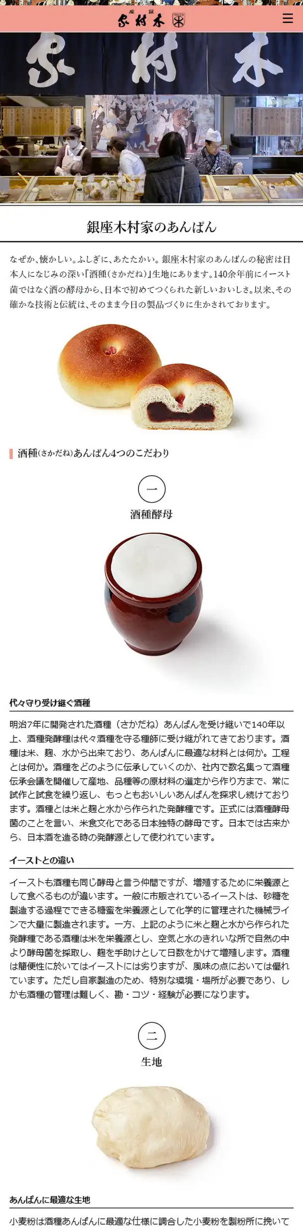 銀座木村家様の持つ長い歴史と伝統を大切にし、東京・銀座の中心に店舗を構えていらっしゃるという立地も踏まえ、 シンプルながら上品さを感じさせるビジュアルコンセプトをご提案いたしました。 あんぱん発祥の店として知られる銀座木村家様の名物「あんぱん」の撮影から、店内のデジタルサイネージに至るまで、トータルで担当させていただきました。